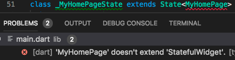 instead of StatefulWidget, the type information enables the tools to catch the mistake and show you a warning immediately: