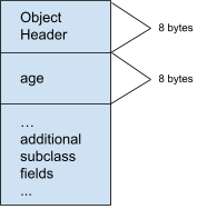 age field. All subclasses preserve (and potentially add to) this structure: any additional fields are laid out after, preserving the base type’s structure. The