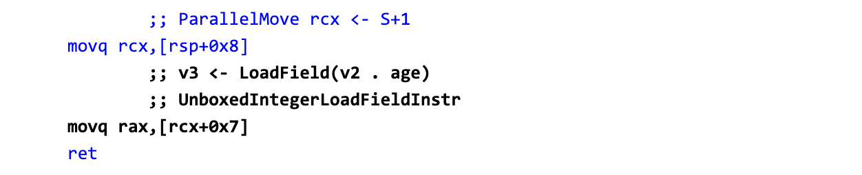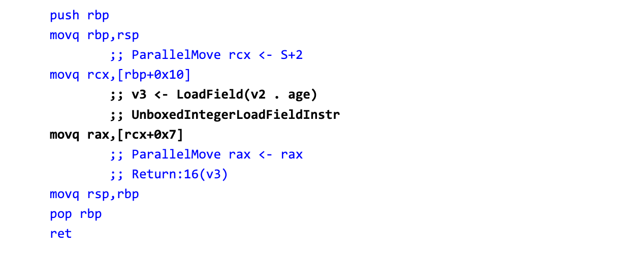 #The first compilation for getAge produced the following 47 instructions on x64: